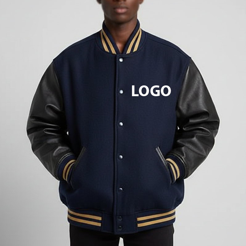 OEM Custom High Quality Men's College Letterman Baggy Varsity Jacket Canvas Long Leather Sleeve Wool Chenille Patches Baseball