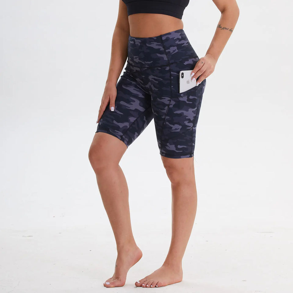 OEM Custom High Waist Yoga Biker Shorts for Women Breathable Fitness Activewear with Button Decoration Pockets
