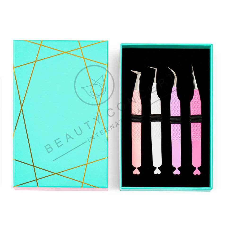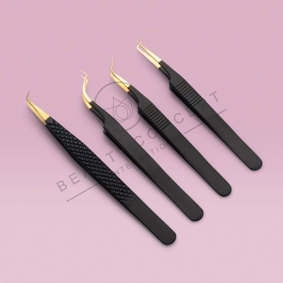 OEM Custom Japanese Stainless Steel Lash Extension Tweezers 90 Degree Custom Applicator Tools Pointed Russian Volume Tweezers