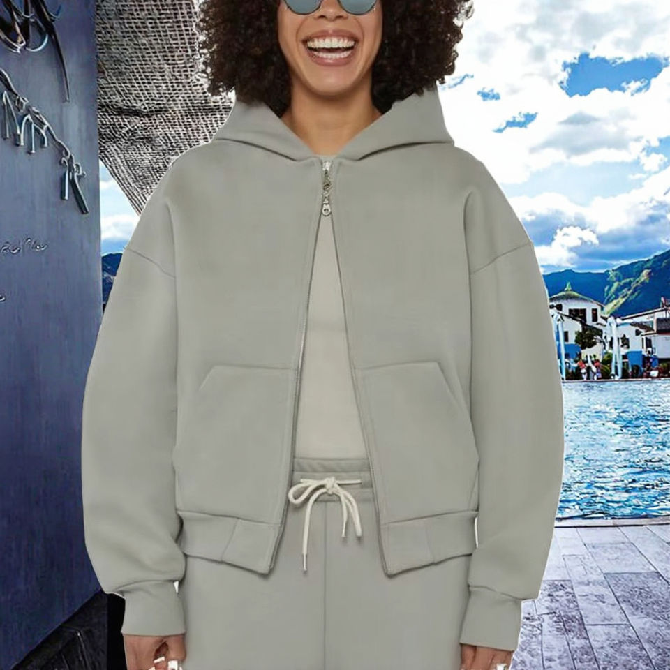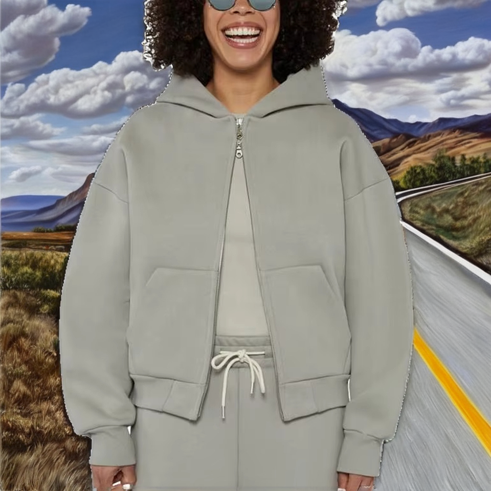 OEM Custom Logo 100% Cotton 450gsm Heavyweight Oversized Women's Zip-Up Hoodie Washed Anti-Wrinkle Feature for Spring Long