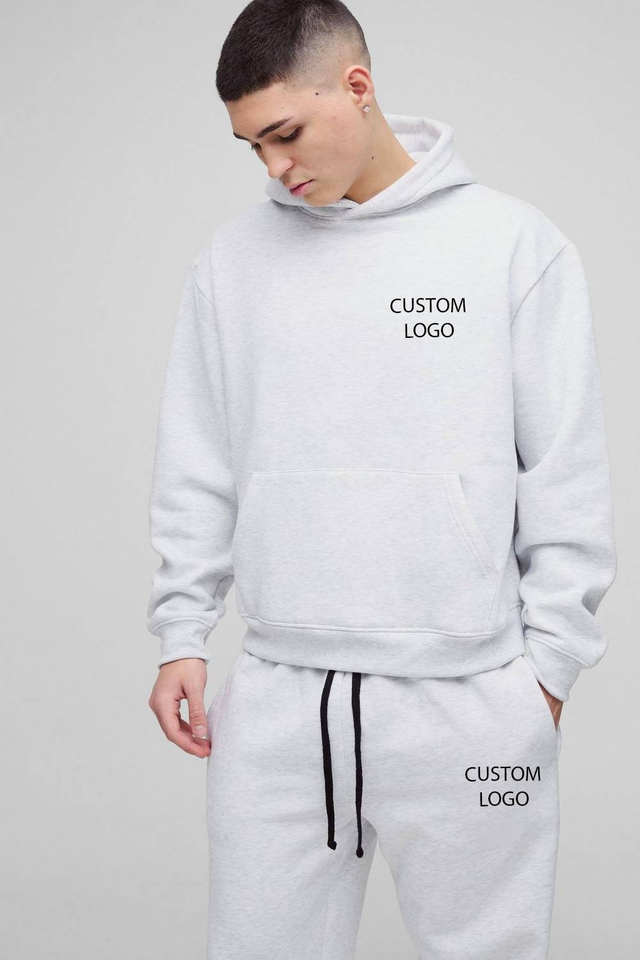 OEM Custom Logo Ash-Grey Oversized Boxy Sweatsuit Unisex Luxury Hoodie and Sweatpants Set Cotton Fleece Custom Printed Technics