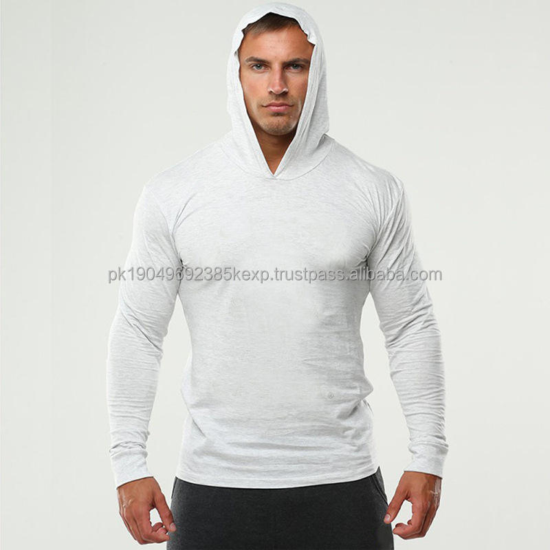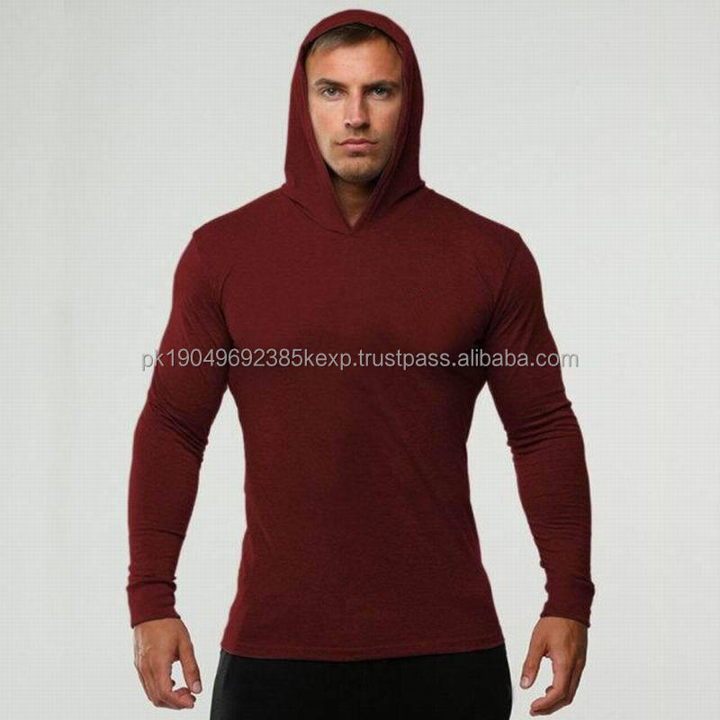 OEM Custom Logo Blank Plain Muscle Gym Hoodies Men Sports Wear Compression Slim Fitted Pullover Workout Hoody T Shirts