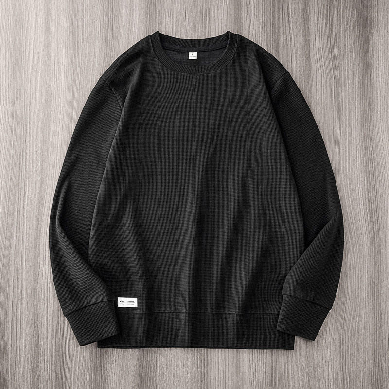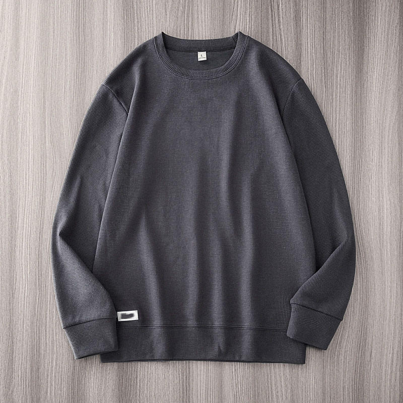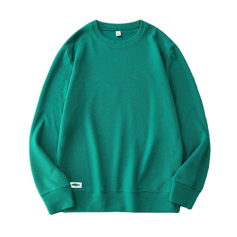 OEM Custom Logo Embroidery Printed Design 270g Waffle Men's Loose Autumn Pullover Sweatshirt Heavyweight O-Neck Solid Color