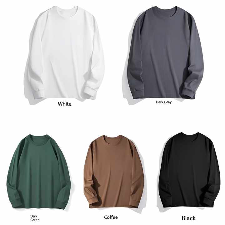 OEM Custom Logo Embroidery T Shirt 200g Mens Long Sleeve Solid Color Crew Neck Unisex Base Layer SpringAutumn Plus Size T Shirt