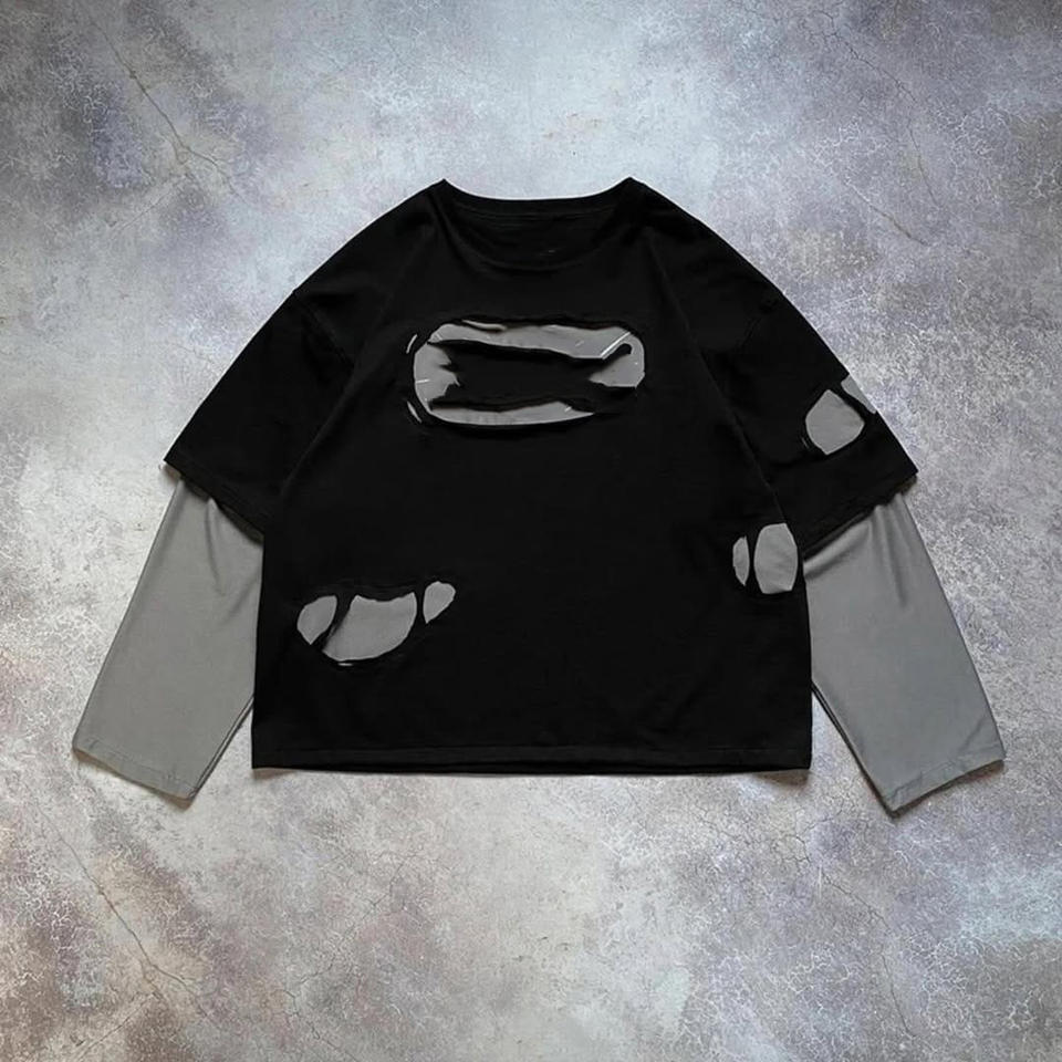 OEM Custom Logo High Quality 100% Cotton Double Layered Long Sleeve Tshirt Custom Hip Hop Printing Mesh T Shirts for Men