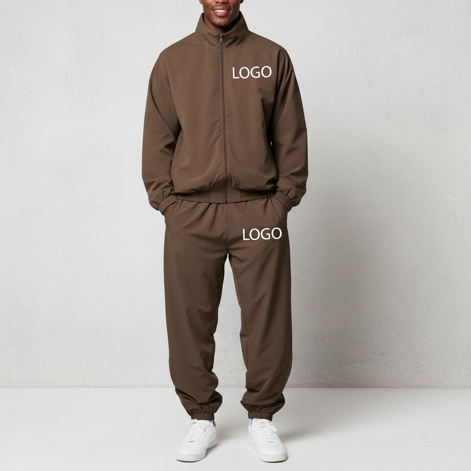 OEM Custom Logo Printed Hot Selling Men's Hooded Sweat Suits Set 100% Cotton Breathable Windbreaker Jacket Two Pieces Solid