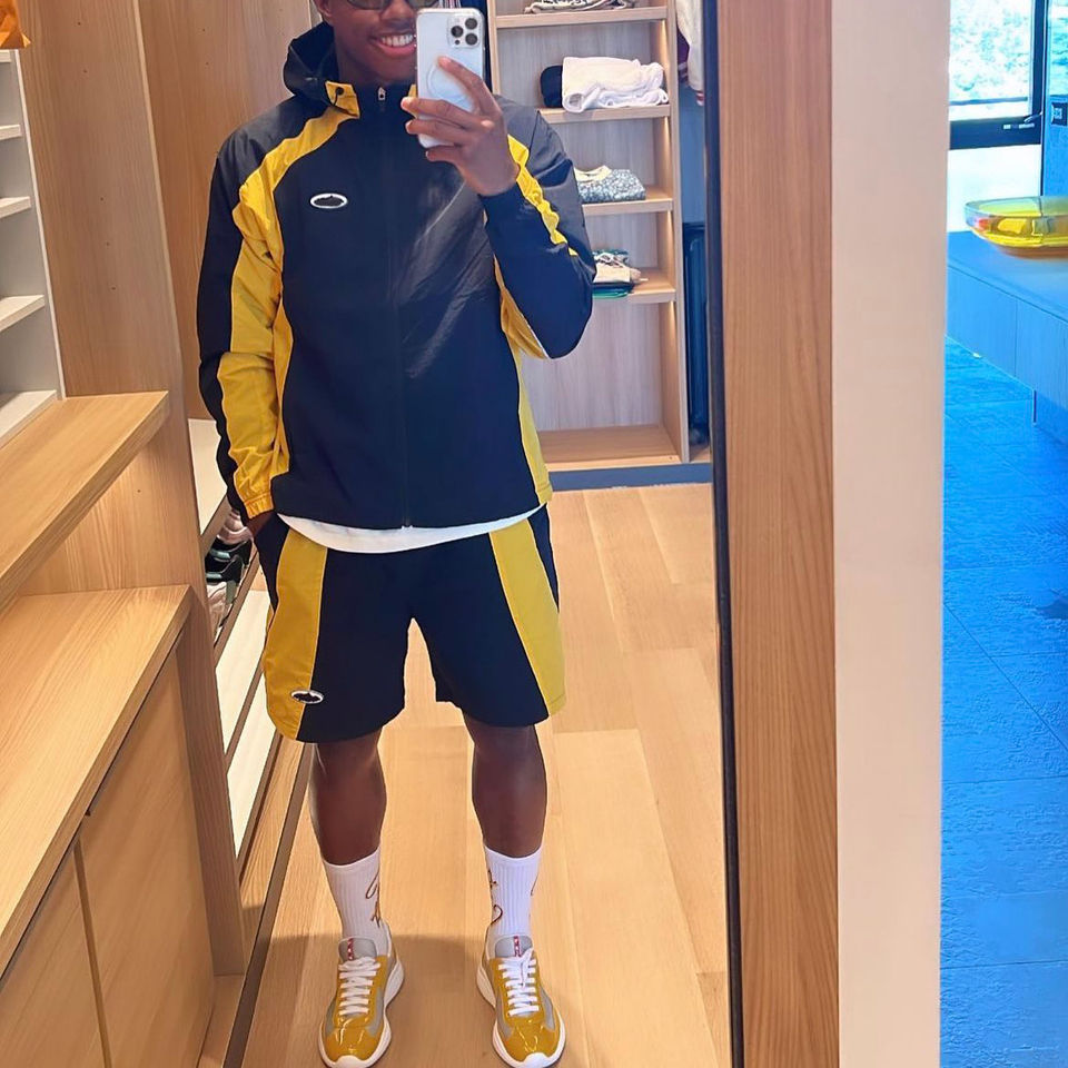 OEM Custom Logo Reflective Patchwork Zip up Jacket Nylon Sports Shorts Sets Tracksuits Unisex for Men Windbreaker Short Sets