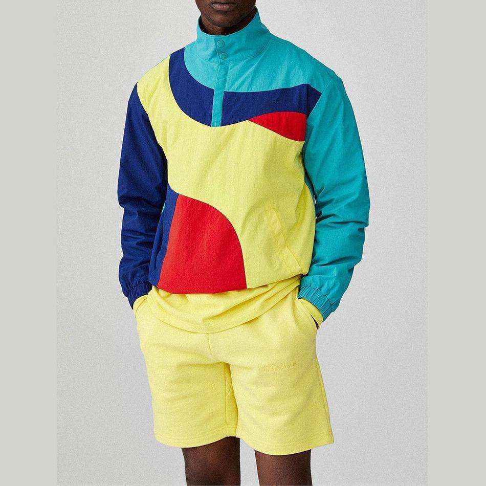 OEM Custom Logo Reflective Patchwork Zip up Jacket Nylon Sports Shorts Sets Tracksuits Unisex for Men Windbreaker Short Sets