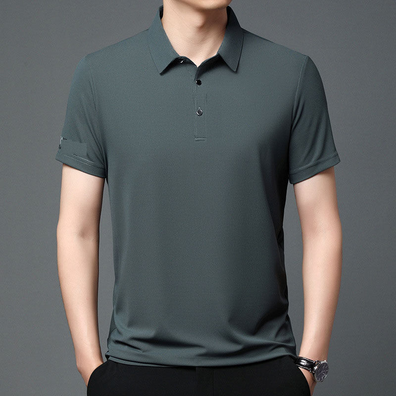 OEM Custom Logo Summer Men's Shirt Short Sleeve Lapel Knit Sweater Slim Fit Korean Style Tops ice silk t shirt polo shirt