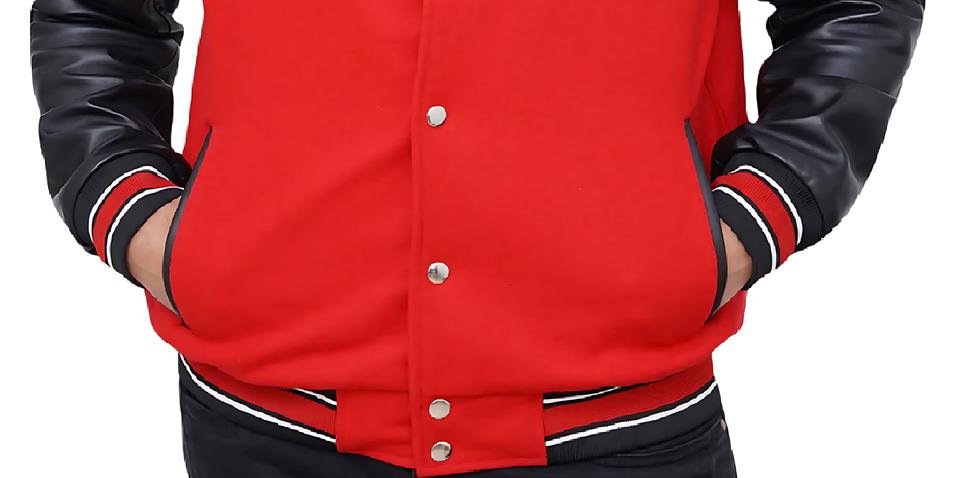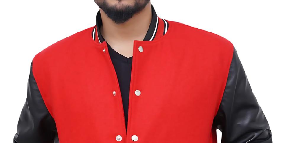 OEM Custom Logo Varsity Jacket for Men Soft Wool PU Leather with Stand Ribbed Hem and Snap Button Closure for Bulk Orders
