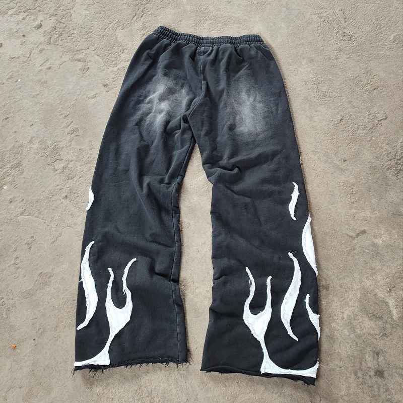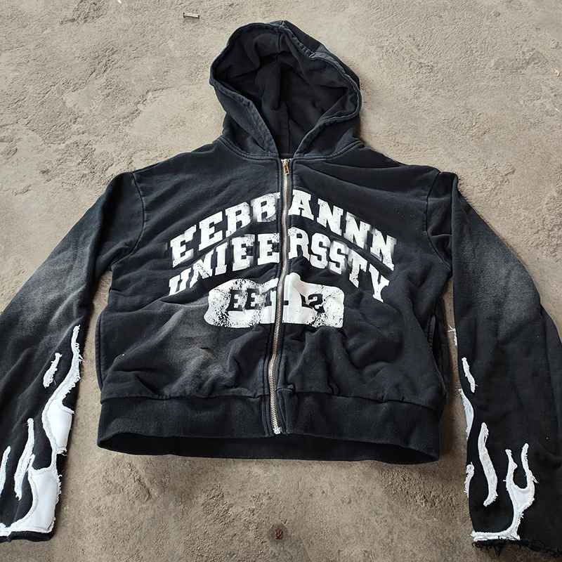 OEM Custom Man Embroidery Applique Distressed Zip up Acid Wash Sweatpants and Hoodies Sets Flared Tracksuits for Men