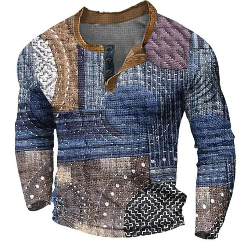 OEM Custom Manufacturer Classic Fit Men's Waffle Henley Shirt Lightweight, Comfortable, and Durable