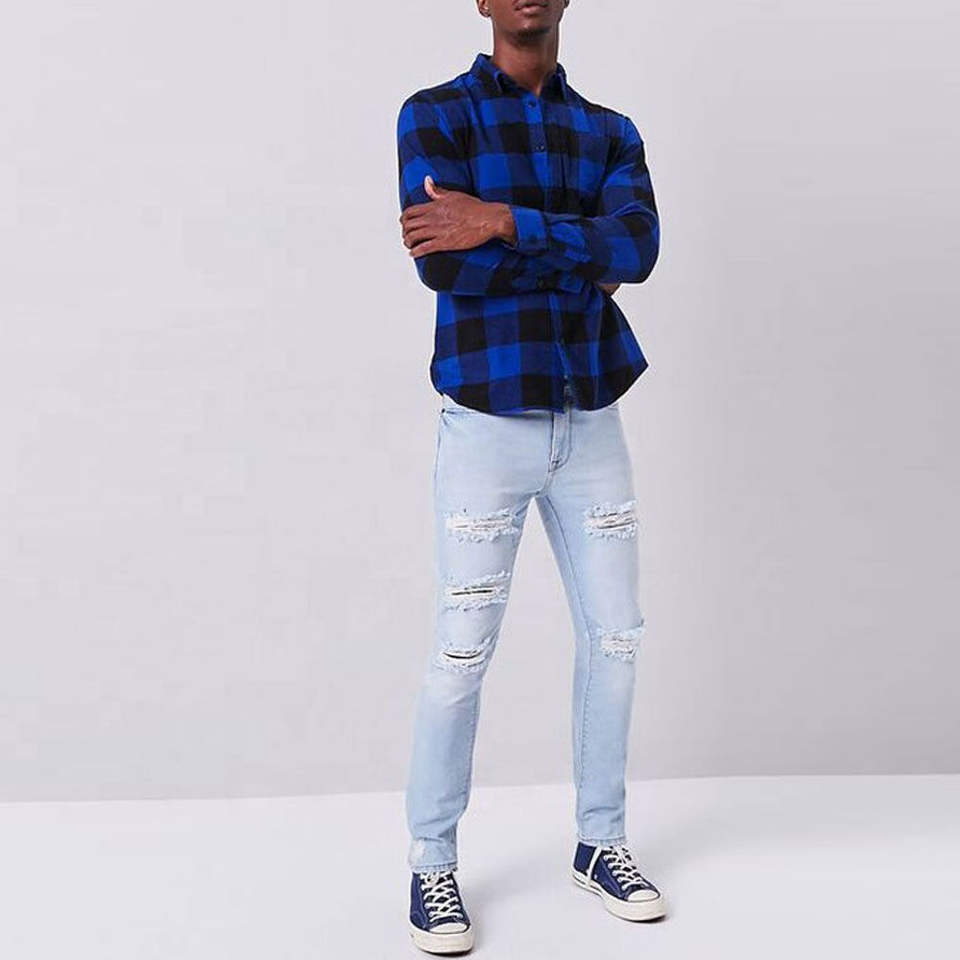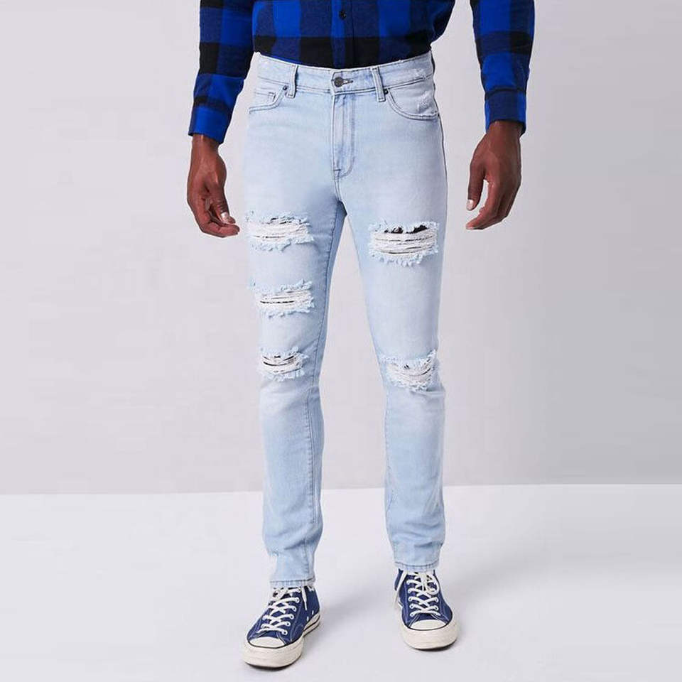 OEM Custom Men Jeans Pants Slim Fit Distressed Jeans Denim Trousers Men Ripped Jeans Design Service For Sale