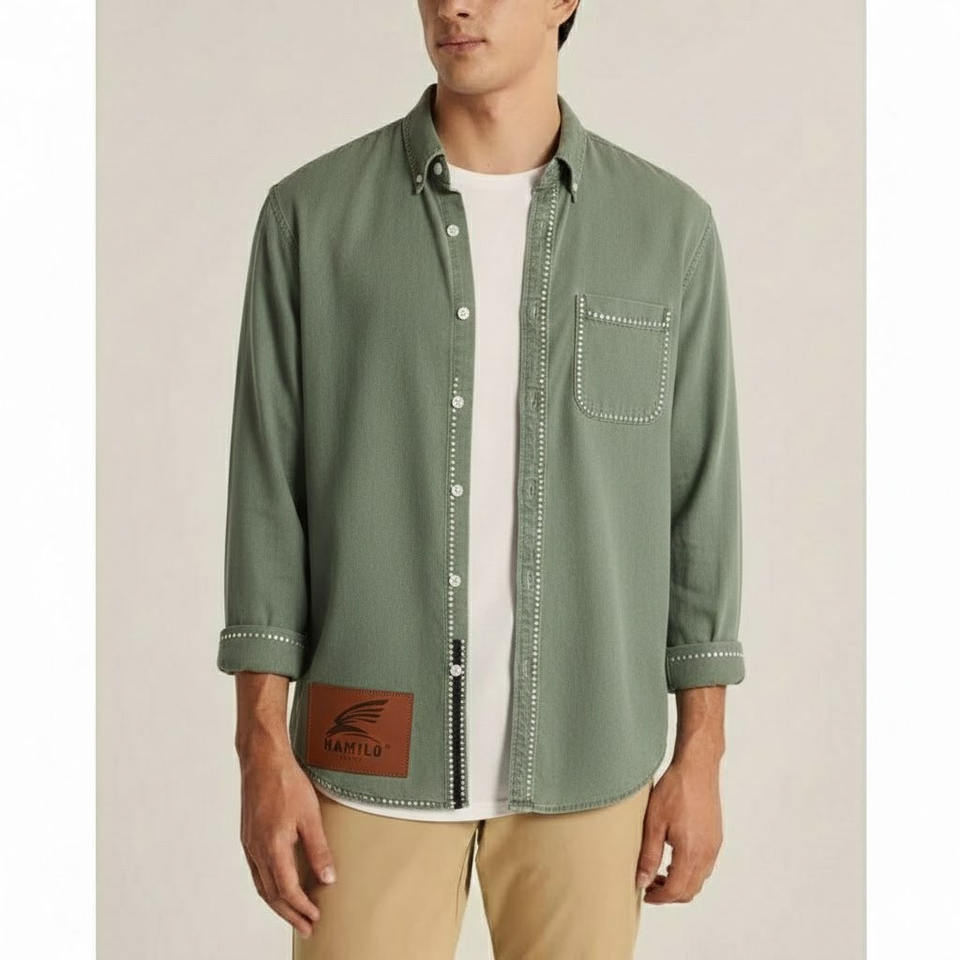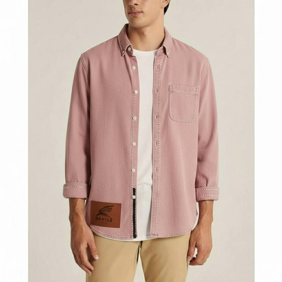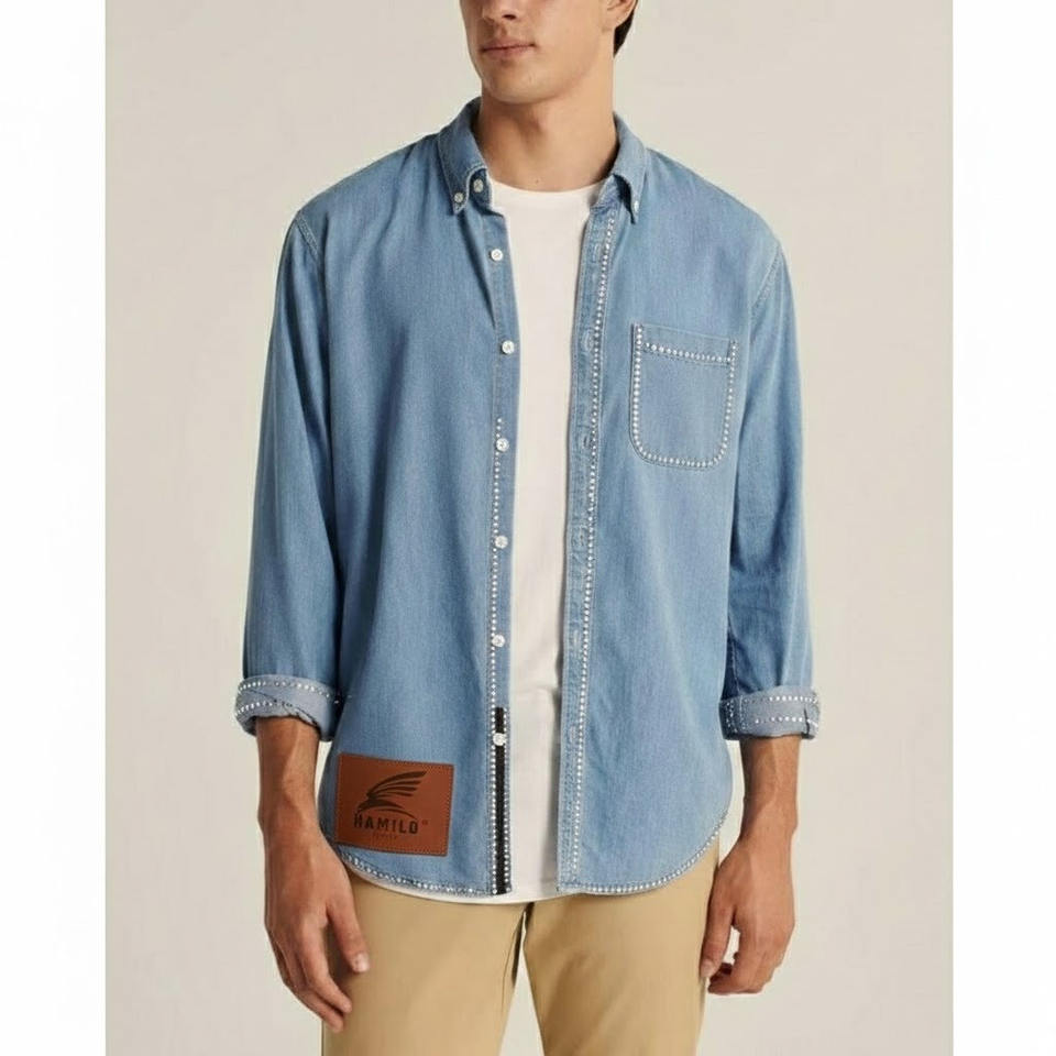 OEM Custom Men's Casual Denim Long Sleeve Shirt Breathable Summer Customized Logo Print Pattern Made Polyester