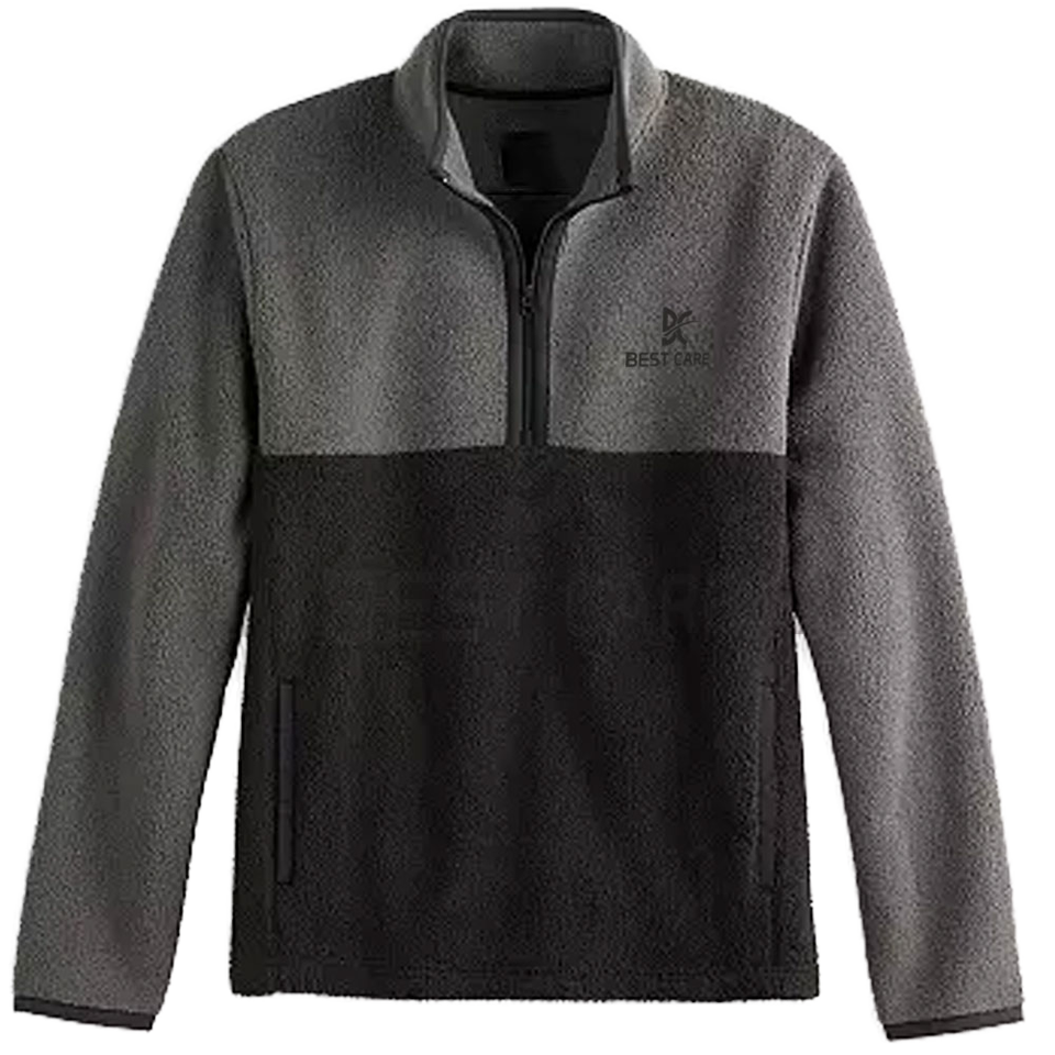OEM Custom Men's Casual Outwear Solid Pattern Polar Fleece Color Block Quarter Zip Pullover Stand Collar Winter Plain Dyed