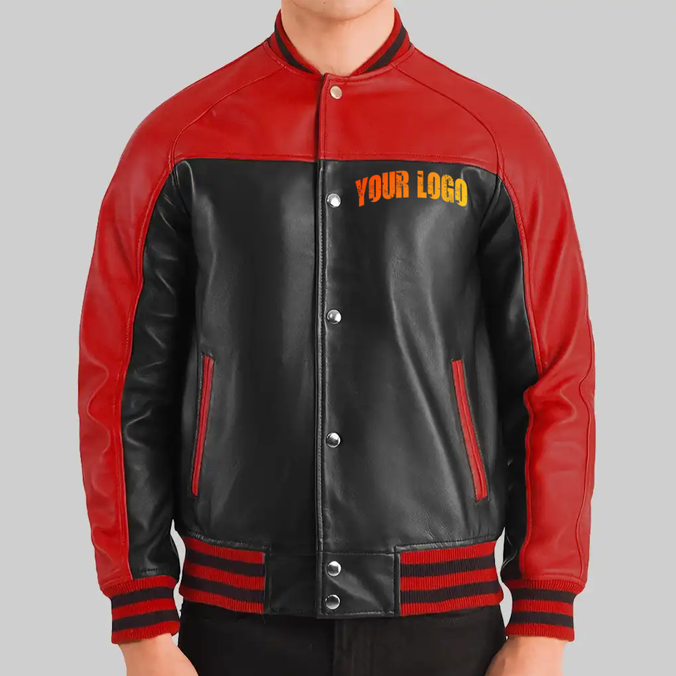 OEM Custom Men's College Color Block Wool Varsity Jacket Black Fleece High Quality Winter High Street
