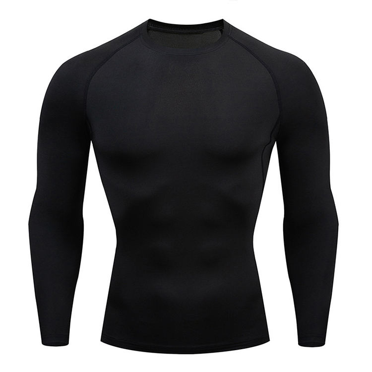 OEM Custom Men's Compression T-Shirt Quick-Drying Breathable Bodybuilding Fitness Workout Shirt with Long Sleeves Tight Fit