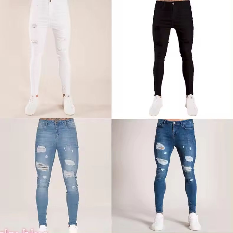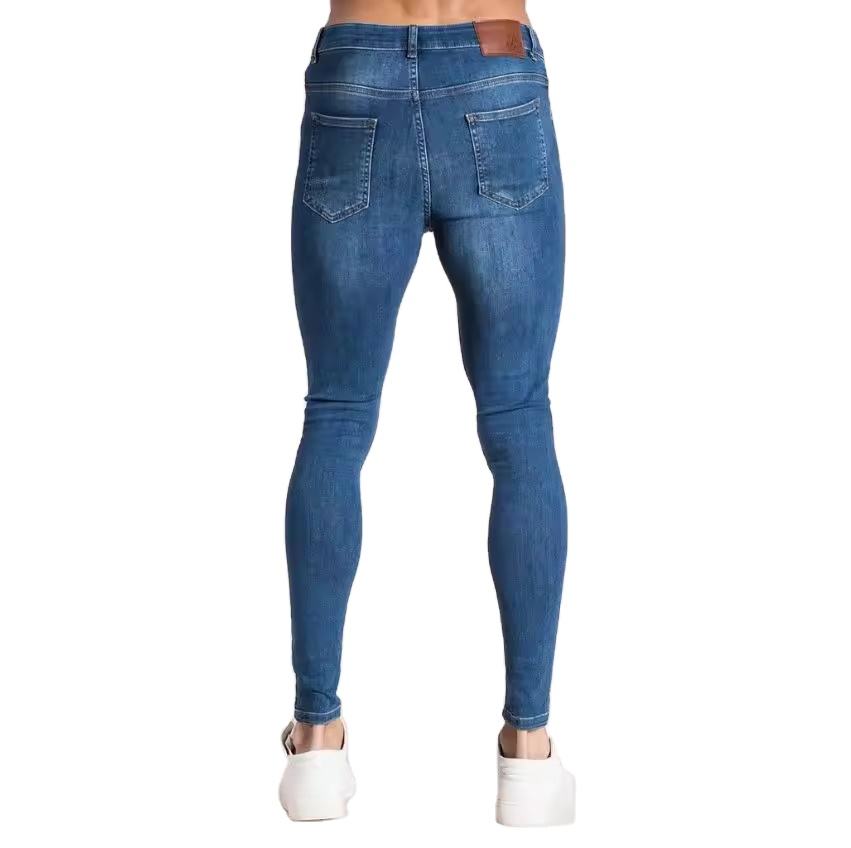 OEM Custom Men's Distressed Jeans Pant Casual Dark Wash 3D Pattern Elastic Waist for Streetwear and Workwear