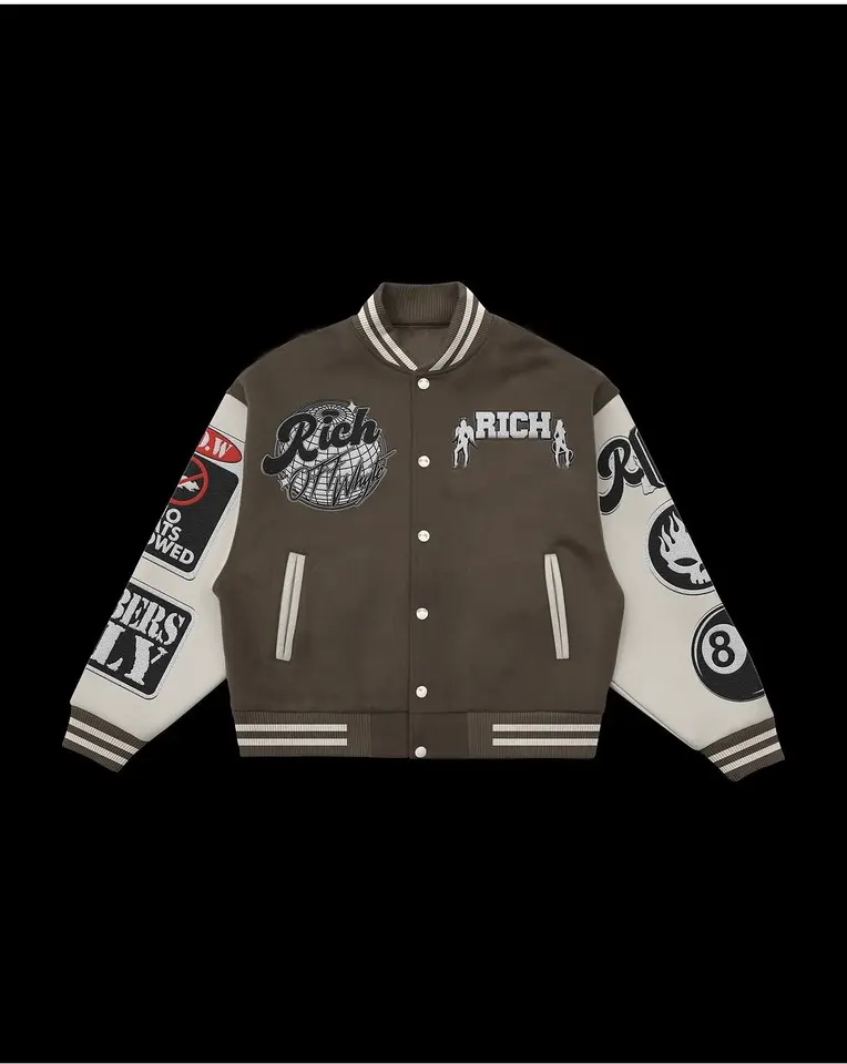 OEM Custom Men's High Street Style Vintage Bomber Jacket Wool Patch Leather Sleeve with Letter Man Varsity Chenille Embroidery