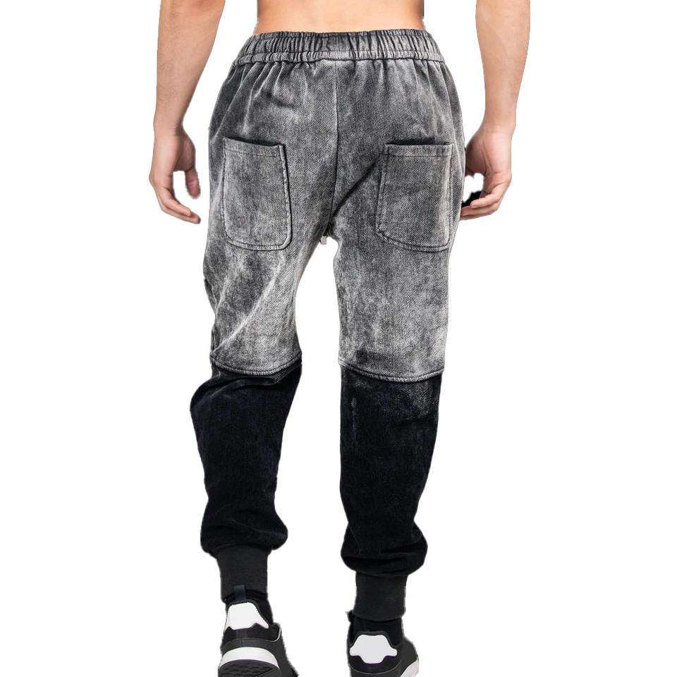 OEM Custom Men's Two-Piece Heavyweight Sweatsuit Set Distressed Embroidery Patch Sweatpants and Acid Wash Hoodie Sets