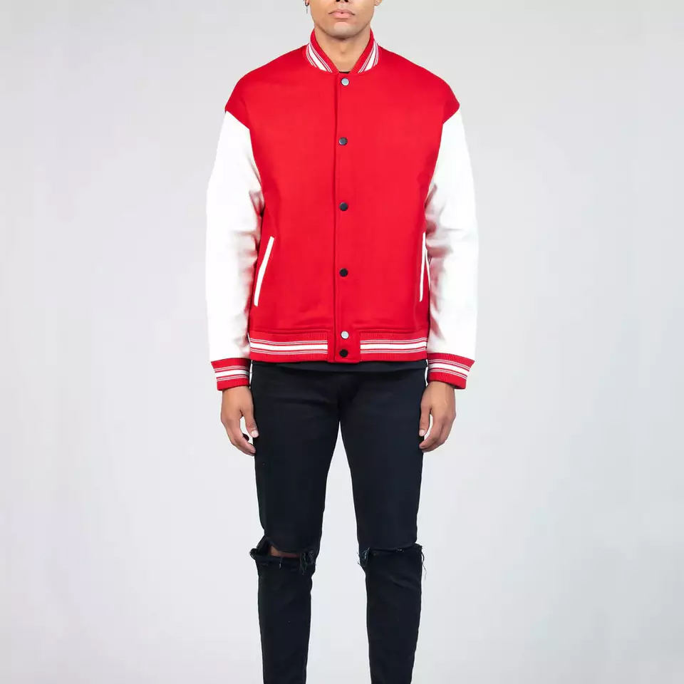 OEM Custom Men's Vintage Baseball Leather Varsity Jacket with Stand Collar and Chenille Patch High Street Style for Winter