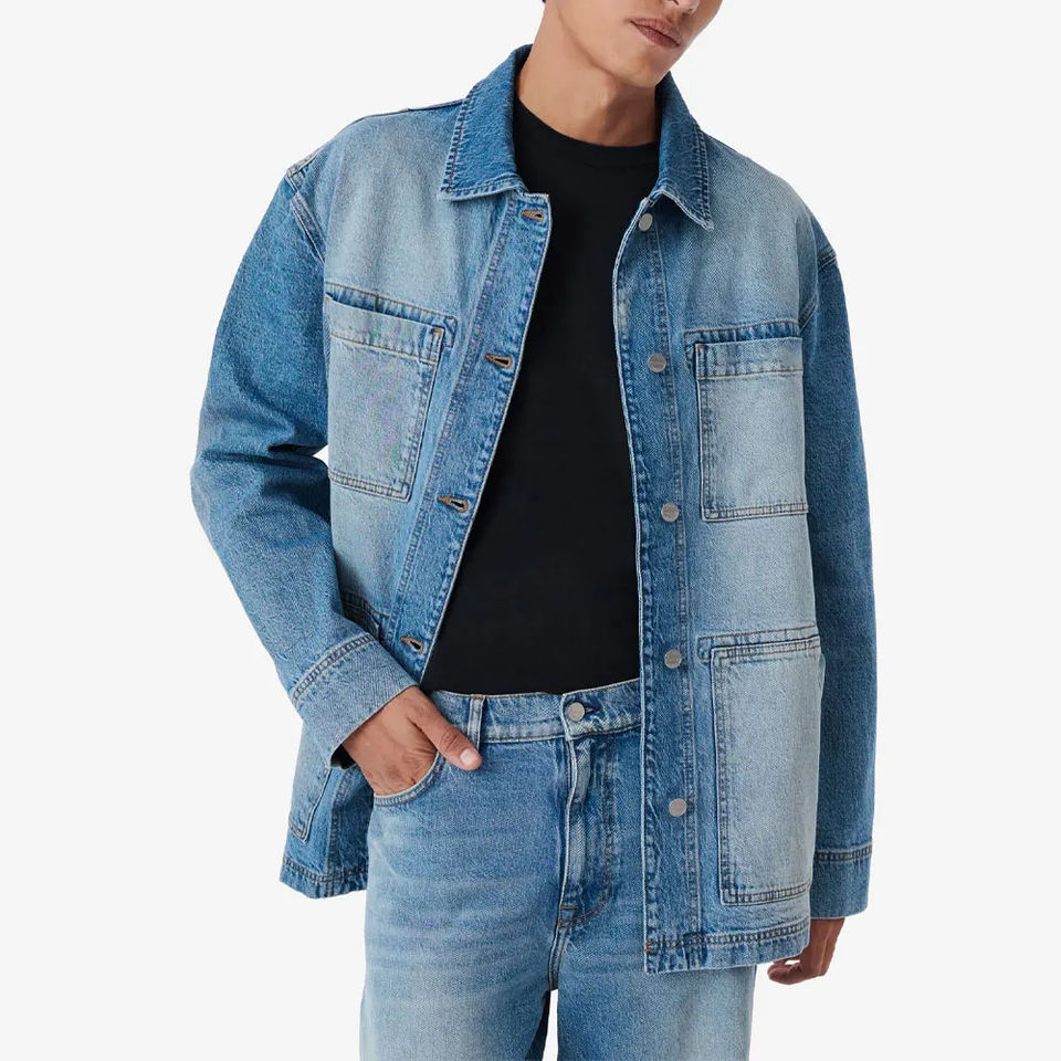 OEM Custom Mens Jean Denim Jacket Faded Effect Denim Cotton Coat Oversized Vintage Washed Denim Jacket