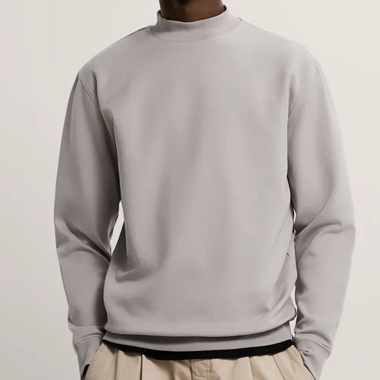OEM Custom Mock Neck Blank Plain French Terry Oversized 100% Cotton Drop Shoulder Pullover Crewneck Sweatshirt Jumper for Men