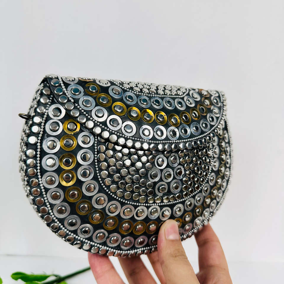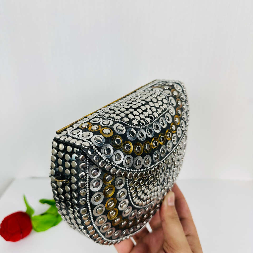 OEM Custom Modern Polished Sculpture Bridal Aluminium Frame Stylish Antique Gold-Plated Clutch Shoulder Purse Wedding