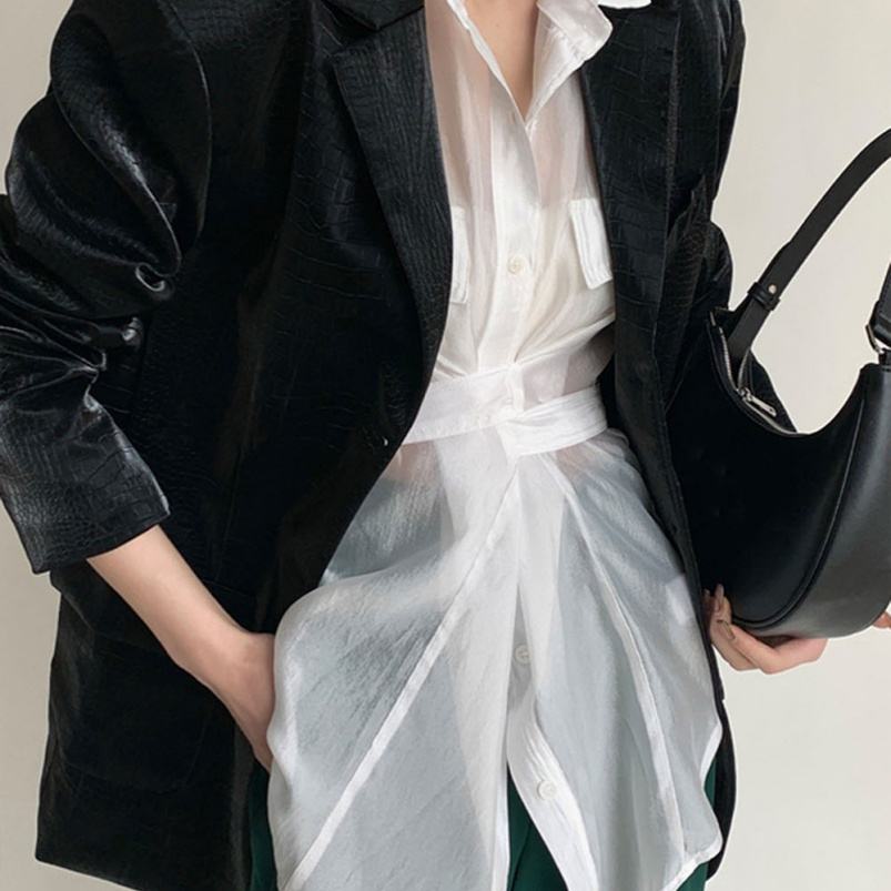 OEM Custom New High Quality Fashion Casual Lady Blazer Coat Double Buttons Long Sleeve Leather Blazer Jacket for Women