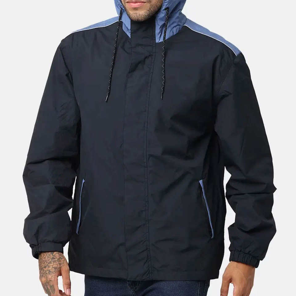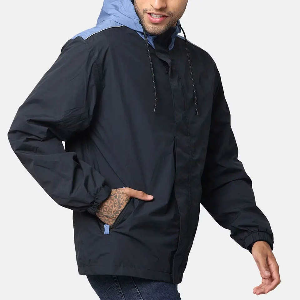OEM Custom Nylon Fabric Zip Up Windbreaker Jacket Lightweight Fabric Two Tone Color Plus Size Hooded Rain Jacket For Winter Use