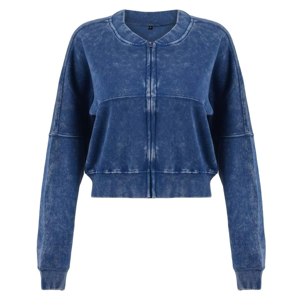 Product Name:Women Zip Up Acid Wash Tracksuit Blue