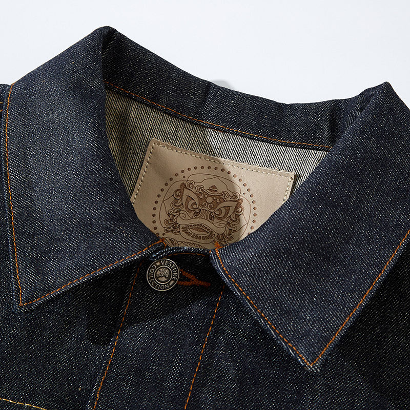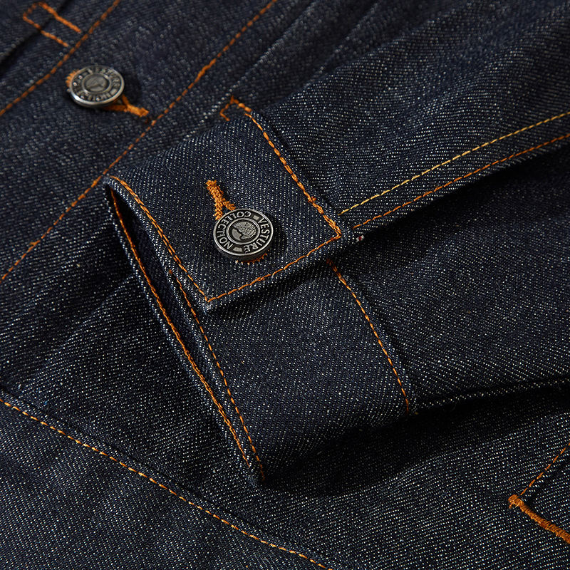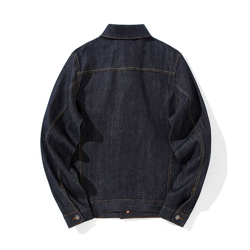 Original Red Selvedge Denim Work Jacket for Men American Casual Style Dark Blue Vintage Slim Thick Jean Jacket Japanese Vintage