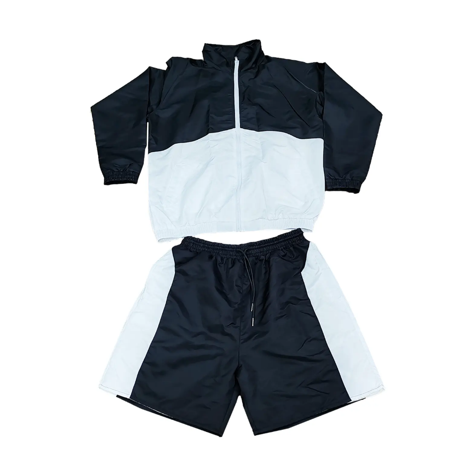 OEM Custom Reflective Track Suit Two Piece Short Sweatsuit Nylon Zipper Windbreaker Jacket Short Set Tracksuit for Men