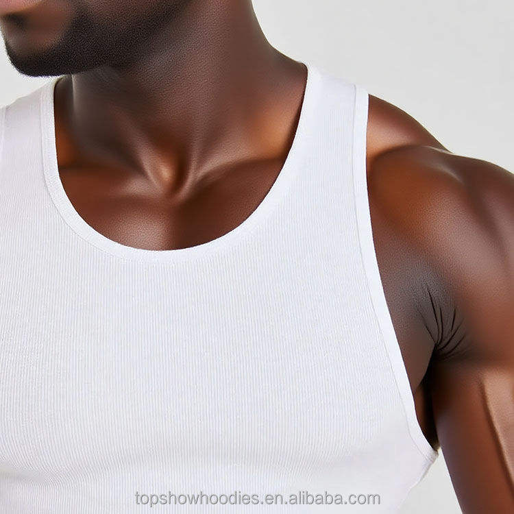 OEM Custom Breathable 100% Cotton Sleeveless Running Tank Tops for Men Casual Ribbed Gym Fitness Muscle Vest Sport Workout