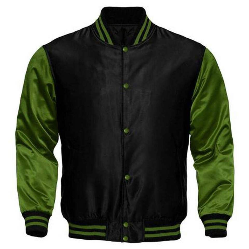 OEM Custom Satin Bomber Jacket for Men Stand Collar Letterman Design with Custom Embroidery for Winter