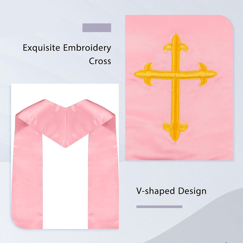 OEM Custom Signs Church Wedding Sash Satin Silk Choir Stoles With Embroidery Cross For Choir Robe In Multiple Colors