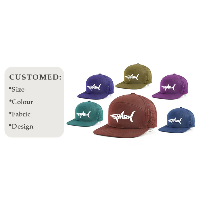 OEM Custom Waterproof Quick Dry 2025 New 6 Panel Custom Logo Hat Flat Brim Polyester Laser Cut Breathable Snapback Hat