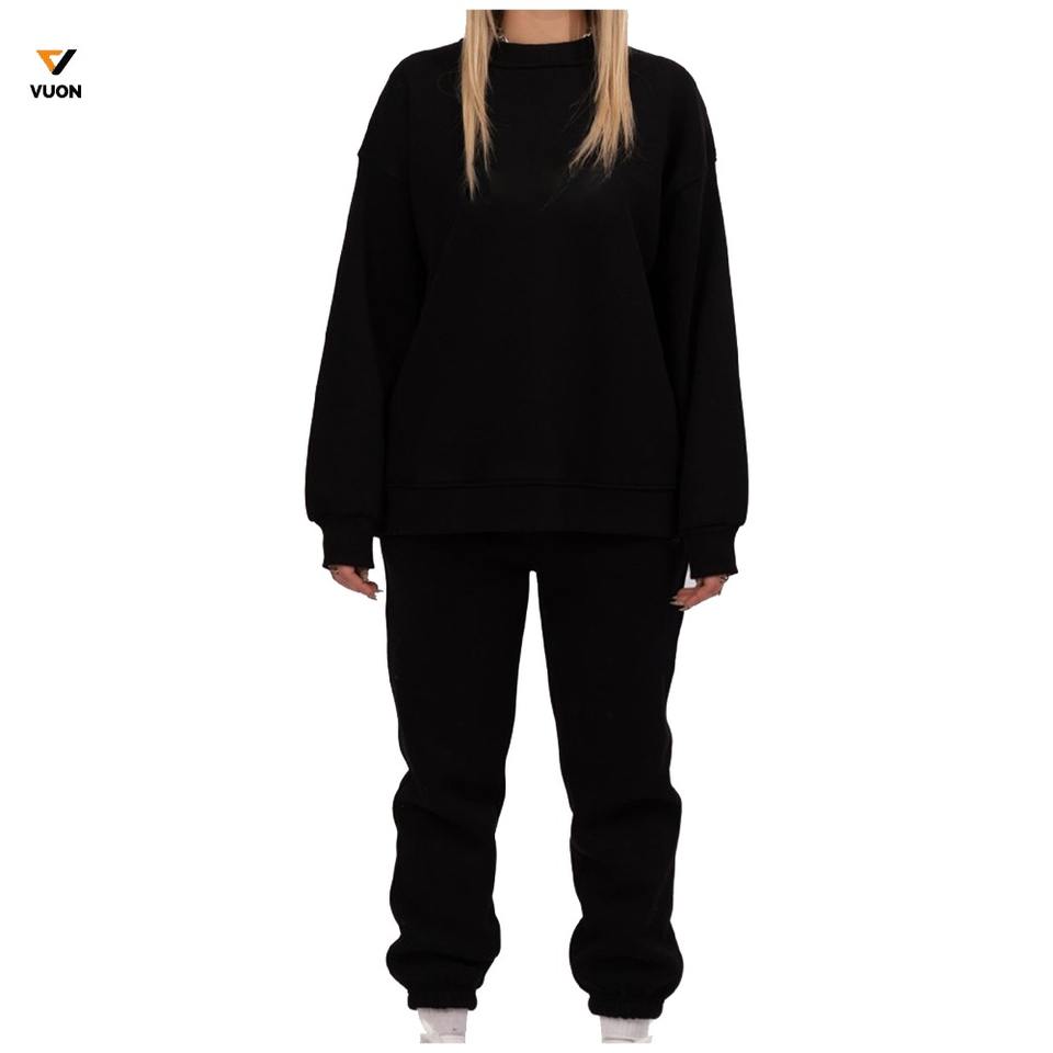 OEM Custom Winter 100% Cotton Sweatsuit Set Women Cotton Vendor Oversized Crewneck Sweatshirt and Jogger Sets Women Tracksuit