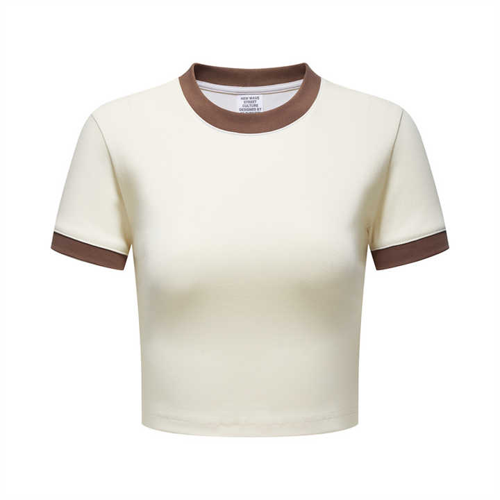 OEM Custom Women Cuter Than You Slogan Crop Top Crewneck Short Sleeve Pink Ringer Tee Slim Fit Tight Shirt