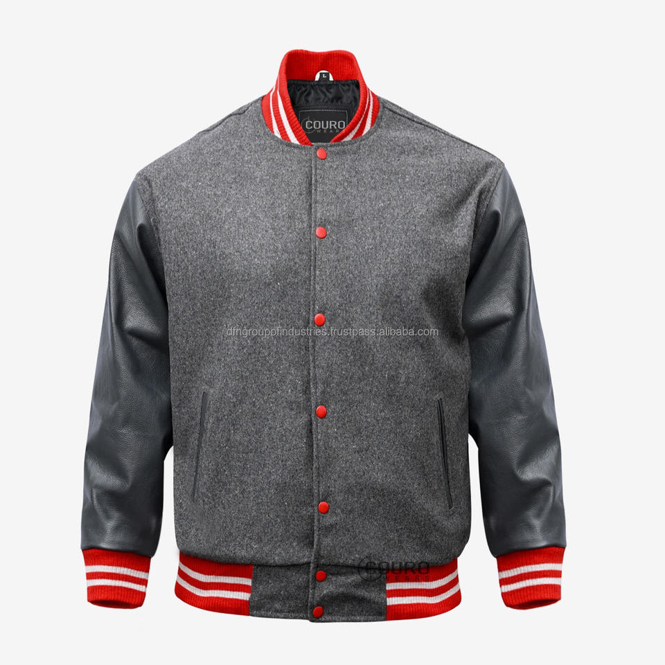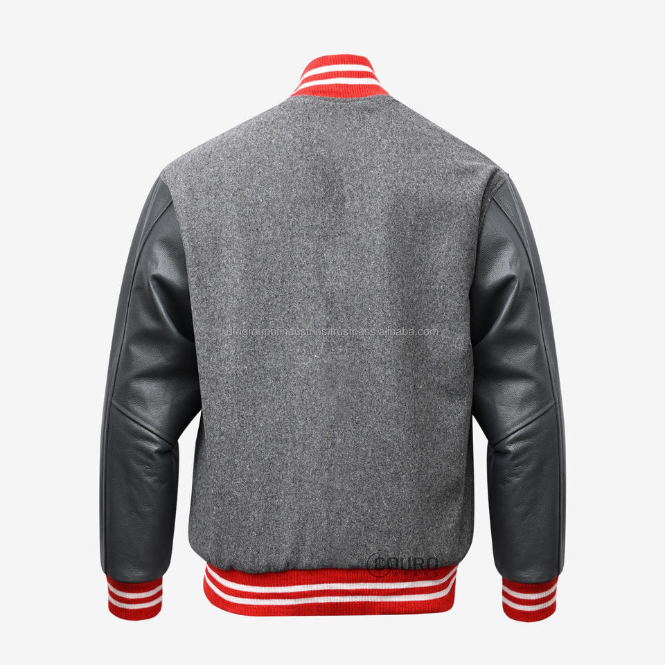 OEM Custom Wool Patch Leather Sleeve Vintage Letter Man Varsity Chenille Embroidery Black Grey Jacket