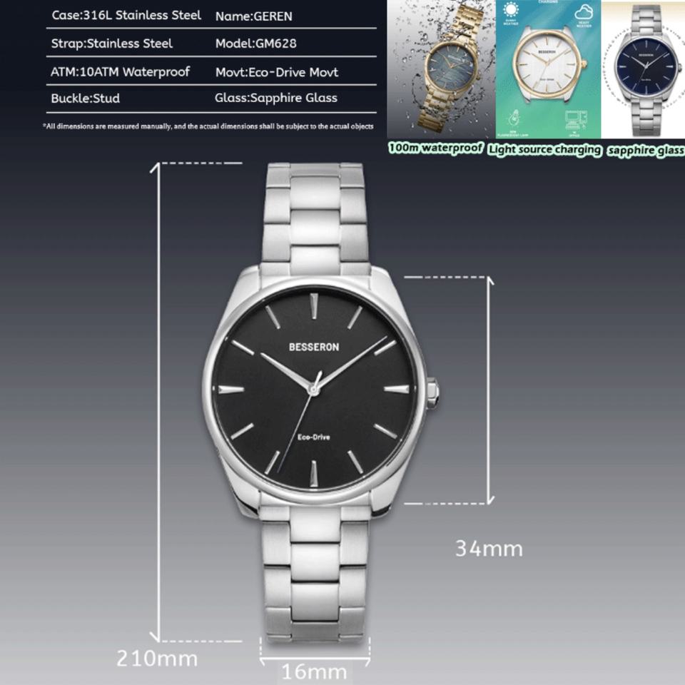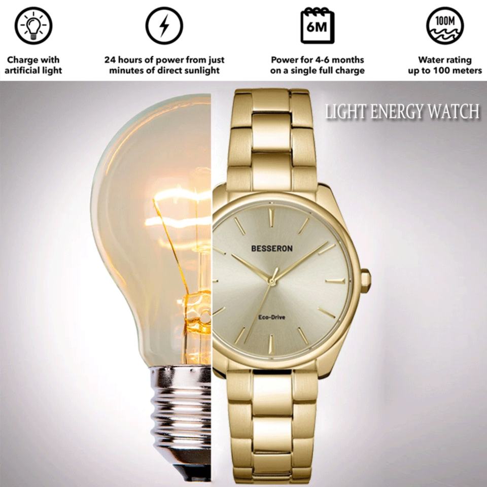 OEM Custom for Besseron Women's Wristwatch Eco-Light Charger Stainless Steel Band White Blue Green-Quartz Business Fashion Style