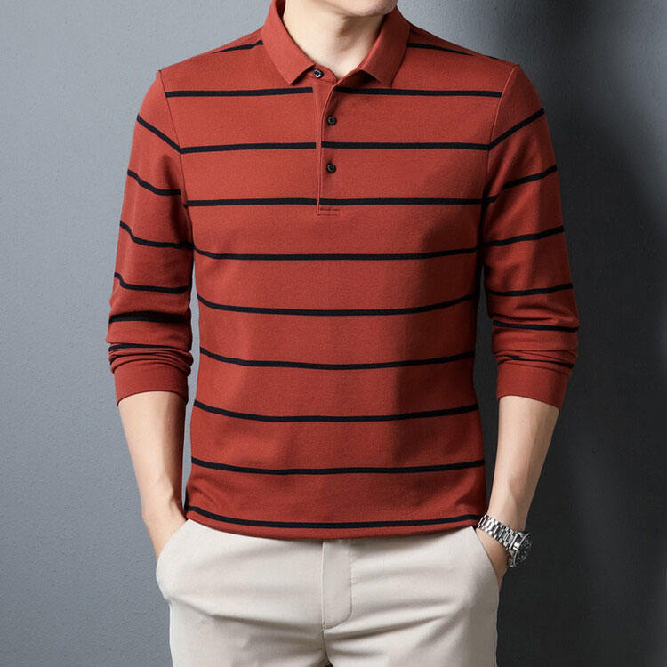OEM Custom logo Embroidery Printed Design Long Sleeve T-shirt Men's Middle-aged Striped POLO Shirt Casual Men's Tops Polo Shirt