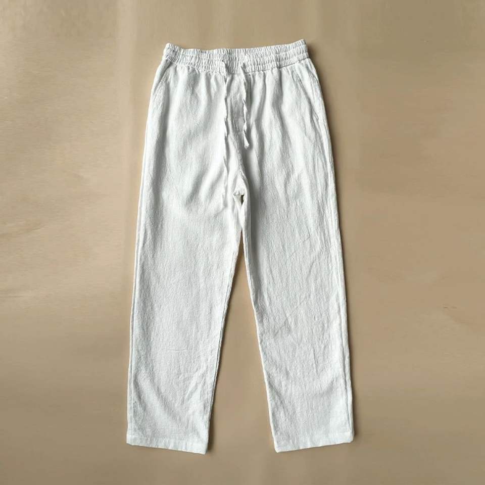 OEM Custom logo Embroidery Printed Design Linen Pants Men's Summer Thin Loose Straight Pants Drape Cotton and Linen Trousers