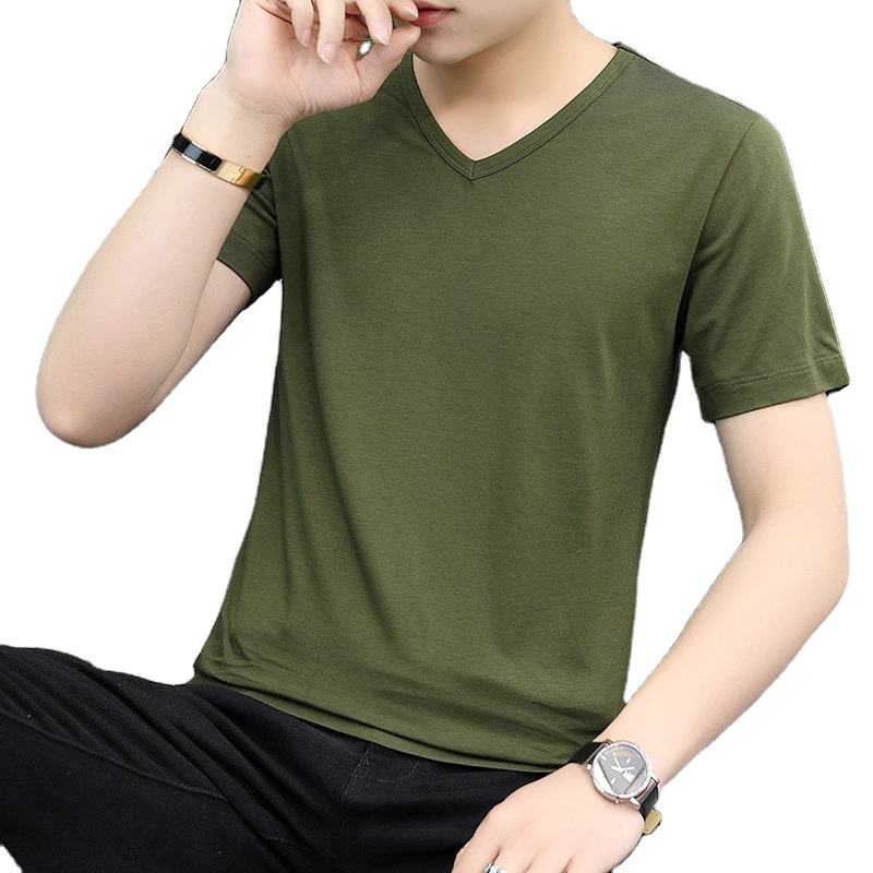 OEM Custom logo Embroidery Printed Design V-neck T-shirt Men's Summer New Short-sleeved Pure White Slim Fit Size T-shirt
