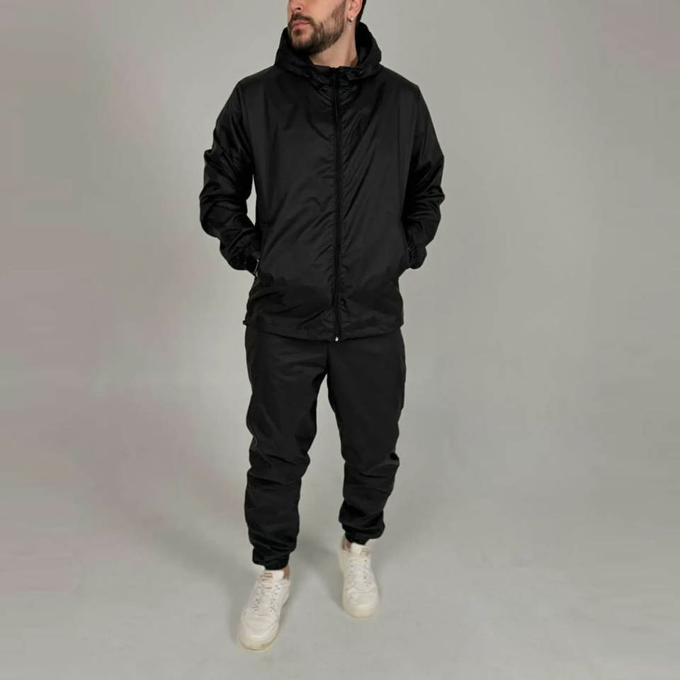 OEM Custom logo Reflective Jogging Nylon Tracksuit Mens Windbreaker Tracksuit Nylon Sets White Pipping Stripes for Men