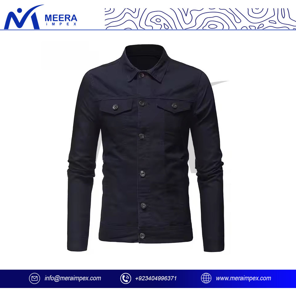 OEM Customize Vintage Style Denim Jacket Hot Selling Solid Black Color Slim Fit Front Pockets Breathable Jeans Jacket For Men