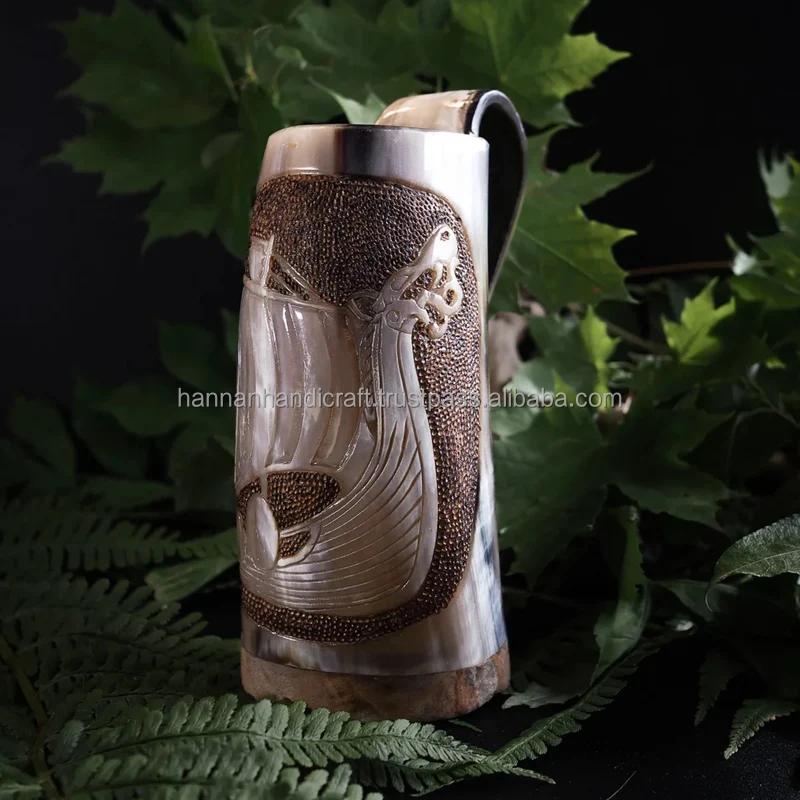 OEM Customized Eco-Friendly Handmade Real Buffalo Horn Beer Mug for Restaurant Bar Supplies
