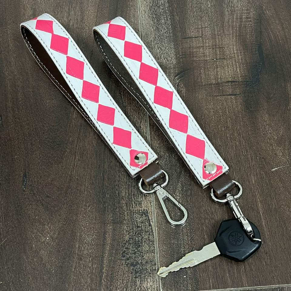 Product Name:Genuine Checkered Leather Wristlet Keychain