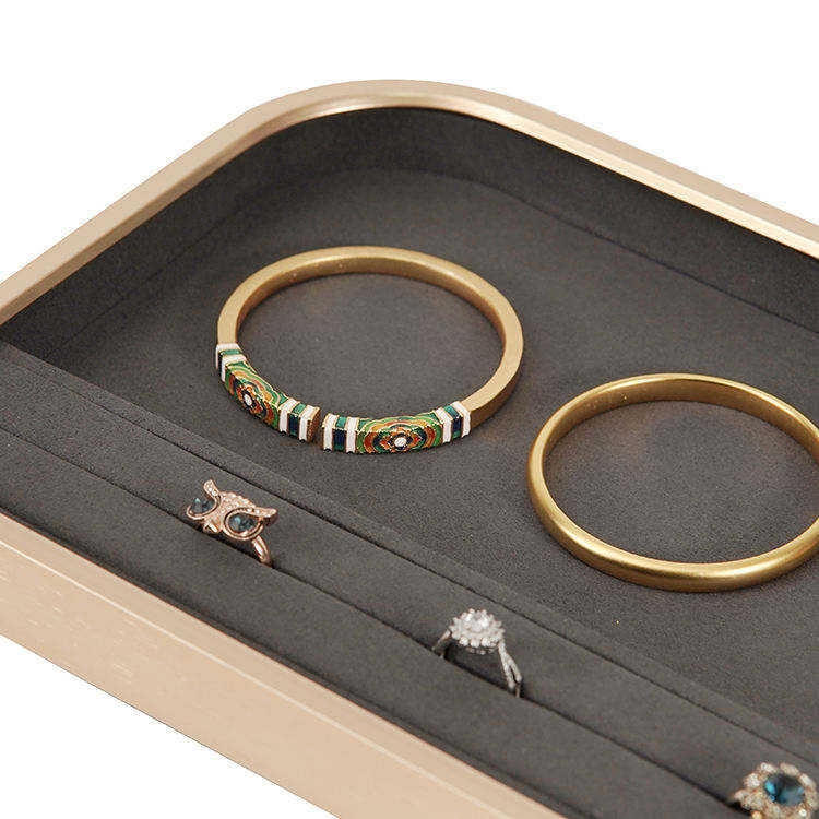 OEM Customized LOGO Creative Stackable Ring Tray Metal Edge Jewelry Display for Ear Rings Necklace Stacking Jewelry Boxes Trays