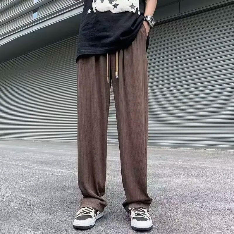OEM Customized Logo Design men and women loose straight casual pants wide leg pants ice silk thread smooth material pants